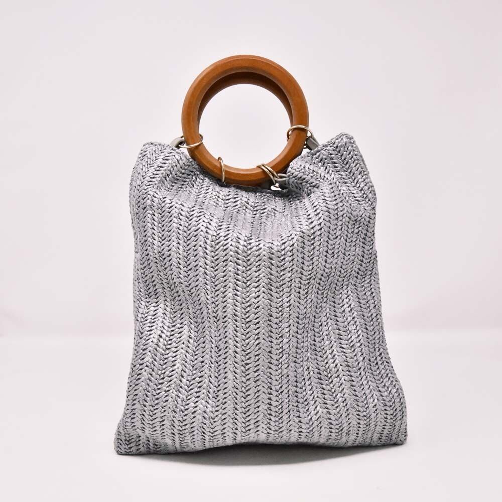 リネン風素材のウッドハンドルバッグ。